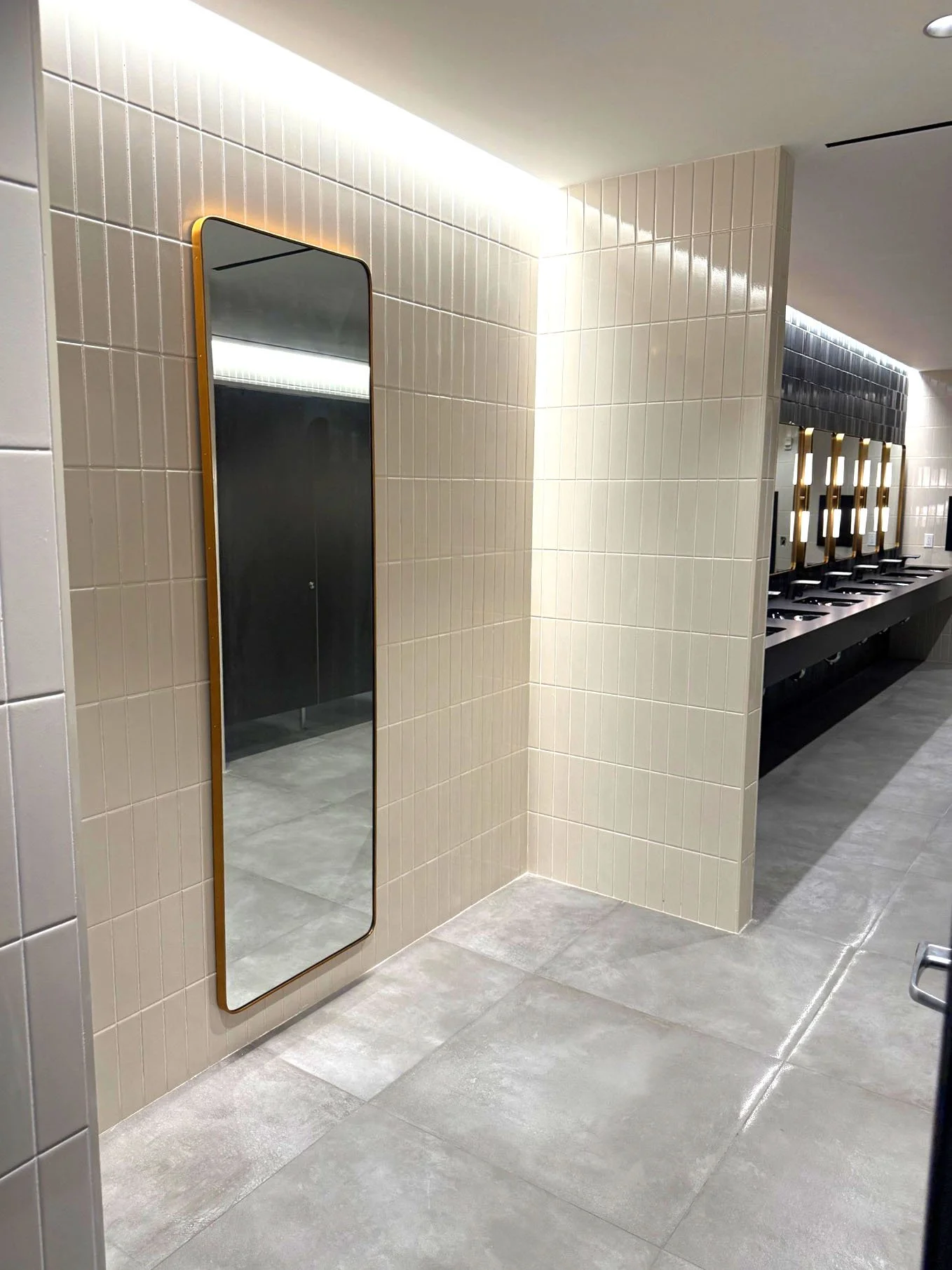 The renovated bathrooms and corridors at One Penn Plaza feature modern finishes, upgraded lighting, and refined materials that create a clean, contemporary look. Enhanced layouts and high-quality fixtures provide a polished, comfortable experience throughout the space.